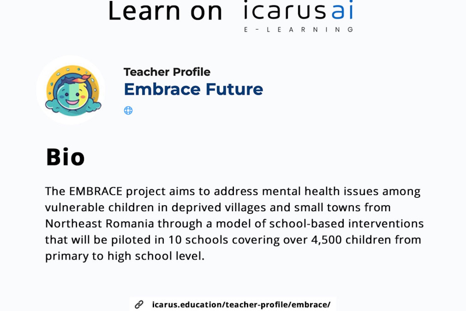 We’re excited to share that EMBRACE learning material will be shared on the ICARUS e-Learning platform! Designed for kids, educators, and parents, our courses make mental health education engaging, accessible, and impactful.